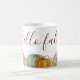 Cai a caneca de café com uma bela decoração de abóboras e o texto "olá cair".