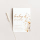 Se você ama um estilo simples de boho, este convite é certo para você. O convite apresenta um design elegante, com um fundo bege suave. No centro, os detalhes do partido são lindamente escritos em um texto branco exuberando um ar de sofisticação. À direita, flores silvestres do outono suavemente se sentam do lado. Convide convidados para a sua festa de chá de fraldas em estilo. A cor e o texto em segundo plano são editáveis.
