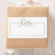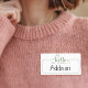 Estes nomes de etiqueta encantadores são a forma perfeita de ajudar os convidados a misturarem-se e a conhecerem-se uns aos outros na vossa festa de troca de presentes "Coisas Favoritas". Os autocolantes leram o texto "olá, meu nome é" em um roteiro verde manuscrito. Encoraje os hóspedes a escreverem o seu nome em uma etiqueta à medida que chegam. © Kimbellish, LLC
