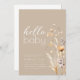 Se você ama um estilo simples de boho, este convite é certo para você. O convite apresenta um design elegante, com um fundo bege suave. No centro, os detalhes do partido são lindamente escritos em um texto branco exuberando um ar de sofisticação. À direita, flores silvestres do outono suavemente se sentam do lado. Convide convidados para a sua festa de chá de fraldas em estilo. A cor e o texto em segundo plano são editáveis.