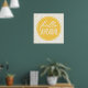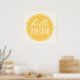 Traga um pouco de sol extra para a decoração da sua casa com este pôster feliz "olá sunshine". Perfeito para um escritório, berçário ou quarto de crianças. O design apresenta tipografia estilo escrita à mão branca em um círculo laranja amarelo, com um fundo de pontos polka de folha de ouro falso. (Nota: A aparência dourada do padrão de pontos é obtida com uma imagem impressa e não é tinta metálica ou folha de ouro.)