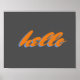 Olá tipografia palavra art poster tem letras laranja e azuis em negrito em fundo de cinza carvões para a moderna tradição em casa ou no escritório.
