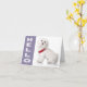 Os cartões de saudação são uma forma excelente de mostrar apreço, ou de deixar amigos e familiares saberem o quão especiais eles são quando, às vezes, as palavras ficam sem palavras. Este bonitinho de noteca apresenta um feliz cachorro malvado branco parado em um fundo branco nítido. A saudação de saudação é realçada sobre um fundo texturizado roxo.