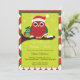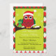 Olha quem está tendo um bebê, convite de chá de fraldas de Natal. Apresentando uma coruja-mãe e bebê em um membro da árvore de neve com um fundo de argila em vermelho, verde e branco.