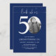 Celebre seu aniversário de 50 anos com estilo de eterno usando este convite de 50 pessoas com marinho azul! Apresentando um design moderno e elegante, este convite azul é perfeito para quem prefere a simplicidade com um toque de elegância. Totalmente personalizável, você pode adicionar facilmente os detalhes do seu partido para criar um convite pessoal e sofisticado que dá o tom para uma comemoração de na moda 50 anos.