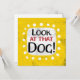 "Olhe para aquele cachorro!" é um design de texto divertido com uma forma de sotaque branca cercado por pontos brancos texturizados.