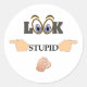 Um design de produto bem-humorado com dedos apontando para fora e para frente como se apontasse para todos, exceto você mesmo. A citação, "Olhe Estúpido" mostra sobre este produto. Personalize isso com seu texto ou foto e aplique a design a qualquer outro item.