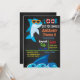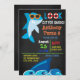 Olhe para fora para tubarões nesta festa na piscina! Este convite tem um fundo do preto do quadro com um tubarão que veste óculos de sol alaranjados. A palavra "olhar" tem dois tubos como o O. No centro inferior disto convide lá é uma cauda do tubarão que sai de ondas rujir. Personalize este convite com sua informação do partido em pias batismais brilhantes do divertimento. Verifique para fora o outro design e produtos nesta coleção em nossa loja.