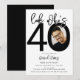 Celebre os grandes 40 anos com estilo com nosso convite de 40º aniversário personalizável e sofisticado! Este convite de design limpo brinca com tipografia preta e negrito e um fundo branco clássico para enfatizar o marco que você alcançou. Incorpore sua foto favorita no design, inserida dentro do zero de '40', definindo um tom pessoal e memorável para sua festa. Fácil de personalizar, você terá um convite distinto tão único e elegante quanto você!