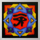 Esta é uma pintura de uma mandala com o Olho de Horus no centro. O Olho de Hóus é um antigo símbolo egípcio de proteção, poder real e boa saúde.