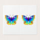 Arco-íris, realista, desenhado artisticamente, borboleta pavão de cores brilhantes com asas detalhadas texturizadas sobre fundo branco. Borboleta-arco-íris.