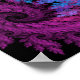 Padrões fractais girando de cor-de-rosa escuro, roxo e azul contra um fundo preto, como os olhos de um furacão ou de um dragão oriental.