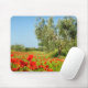Mousepad com uma oliveira velha em um cheio do campo da papoila de papoilas vermelhas vibrantes em uma paisagem em Toscânia, Italia.