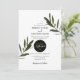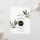 Esta design apresenta folhas e ramos de oliveira. O belo verde das folhas elogia a elegante forma negra e moderna do círculo ao redor da data do casamento. Uma fusão perfeita do moderno e chic com cores rústicas da azeitona. Verde-oliva, preto e branco são uma combinação perfeita para um casamento temático mediterrânico. Design de convite de casamento único com elementos modernos. Também estão disponíveis itens de papelaria de casamento e outros formatos de convite de casamento.