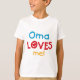 Oma ama-me t-shirt, cartões, etiquetas, os bodysuits ensacam, e mais com design vermelho, amarelo, e azul colorido do texto e do coração. Este Oma ama-me roupa e os artigos do presente farão Oma sorrir!