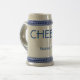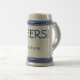 Onça "ELOGIOS do clássico 22!" caneca de cerveja da cerveja em cinzento/azul. Personalize-a! Área para seus texto/nome