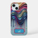 Uma pintura colorida e artística de uma onda com um arco-íris de cores, incluindo rosa, roxo, azul, amarelo e verde. As cores estão pingando e fluindo, criando um efeito dinâmico e vibrante.