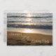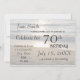 Placa de convite de aniversário 70 com uma bela foto das ondas que caem na praia no pôr do sol. Personalizável com os detalhes do seu partido.