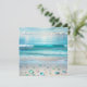 Lindas ondas de oceano azul em uma praia arenosa com vidro marinho e céus azuis turvos.
