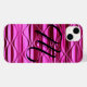 O cobrir personalizado do dispositivo iPhone, cor-de-rosa-escuro, com Ondas Tiney-Satin Rosa, monogramas, apresenta um fundo de variações de ondas tênues brilhantes cor-de-rosa-escuro com linhas sutis de rede de pesca ou de janela, além de uma grande letra monográfica em belo roteiro. Personalize este cobrir de telefone, alterando qualquer coisa sobre ele — comute imagens, adicione imagens, adicione seu próprio texto ou monograma.