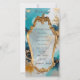Um design artístico sem costura de ondas ouros cintilantes em blues, turquesa, e espuma branca que cai contra a costa, pintada em óleos.