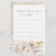 (Escolha o acabamento do papel MATT - NÃO semirbrilho - para gravar.) Adicione uma atividade divertida e memorável ao seu chá de panela com o jogo 'Onde Estávamos?', onde os hóspedes adivinham os locais das fotos com noiva e noivo. Este jogo, enfeitado com delicadas flores de aquarela e pérolas elegantes, traz riso e alegria para sua celebração, complementando perfeitamente a Coleção de Chás de panela Elegantes e Prosecco.
