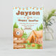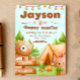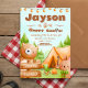 Celebre o dia especial de um pequeno com um tema delicioso e aventureiro. Este convite é perfeito para famílias que amam o ar livre com seu pequeno campista.