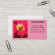A fotografia de uma abelha de mel que recolhe pólen de uma flor está à esquerda do cartão. Vista de cima, a abelha coleta pólen do centro amarelo da flor. Flor é rosa-escuro. O plano de fundo da carta é rosa médio. Personalize o nome da empresa, o endereço e os números de contato à direita.