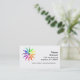 Modelo de cartão de negócios para artistas visuais de todos os tipos. Design no canto superior esquerdo é uma roda colorida padrão feita com folhas gráficas radiando do centro. Personalize com informações comerciais.