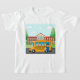 Um ônibus escolar e seu motorista fora de uma escola. Esta design parece muito eficaz nesta Camiseta de Meninas
