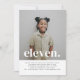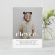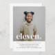 Um simples convite para o Aniversário de 11, com a sua própria fotografia e as palavras 'onze' sobre o topo.