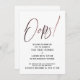 Esta simples distinção de suíte se deve à fonte moderna, escrita à mão, usada para frases de sotaque. Nesta peça, a escrita elegante foi usada para criar um gráfico que retrata a palavra "Oops!"... excelente quando você decidiu encontrar o humor na situação infeliz. Foi embelezado com um efeito rosa de ouro falso-metálico para adição de festivo. Use os campos de modelo para adicionar seus detalhes pessoais e tornar este design moderno seu próprio. O fundo sólido pode ser alterado para qualquer cor que você preferir. Por favor, responda a quaisquer solicitações especiais ou personalize a assistência. 151 //