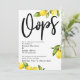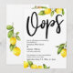 A distinção deste conjunto se deve à fonte de texto manuscrita ousada e casual usada para frases-chave acentuadas com limões! Exibidos em volta das bordas, coloquei uma variedade de aglomerados de limão em aquarela com folhagens anexas. Se você está na posição de precisar informar aos seus convidados de casamento que precisou mudar a data do grande dia... e quer fazer isso com um pouco de humor, aqui está uma opção ousada. Nesta peça, a fonte de texto manuscrito foi usada para criar um gráfico simples que diz "Oops", bem grande. Use os campos do modelo para adicionar seus detalhes pessoais e tornar este design moderno seu. O fundo branco pode ser alterado para qualquer cor que você preferir. Todas as camadas foram adicionadas separadamente e deixadas destrancadas para oferecer a você a maior quantidade de controle de design. Por favor, entre em contato para qualquer solicitação especial ou para obter ajuda na personalização