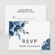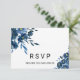 Este cartão rsvp de escolha floral azul moderno é perfeito para um casamento de destino. Este elegante design floral pintado à mão apresenta flores azuis, azuis escuras e indigo graciosas com folhas verdes, representando majestosa beleza natural.