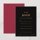 Cartão de Convite para Casamento RSVP Preto e Vermelho Escuro. Este cartão incluía opções de refeição. Texto colorido de cobre totalmente personalizável. As cores de fundo preto e vermelho escuro podem ser alteradas. Moody, elegante e moderno.