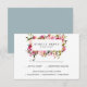 Projetado para combinar com nossa coleção de casamento Brilliant Bloom, este cartão de resposta RSVP botânico fresco rosa, azul poeirado e branco apresenta uma moldura de verde aquático e flores rosa no topo da data de resposta desejada, aceitação personalizada e redação de declínio e seleção de opção de refeição.