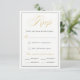 RSVP de Script Dourado Elegante com opções de refeição; borda opcional, você também pode escolher uma cor para o backer.