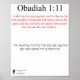 בְּיוֹם֙ עֲמָֽדְךָ֣ מִנֶּ֔גֶד בְּי֛וֹם שְׁב֥וֹת זָרִ֖ים חֵיל֑וֹ וְנָכְרִ֞ים בָּ֣אוּ שְׁעָרָ֗יו וְעַל־יְרוּשָׁלִַ֙ם֙ יַדּ֣וּ גוֹרָ֔ל גַּם־אַתָּ֖ה כְּאַחַ֥ד מֵהֶֽם ׃