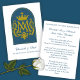 Esta reverente carta de oração do casamento católico apresenta um monograma mariano radiante, coroado em glória e enquadrado dentro de um arco azul mariano. A frente homenageia Nossa Senhora, cuja intercessão abençoa o Sacramento do Santo Matrimônio. Dentro, uma benção nupcial solene reza pela unidade, paz e santidade do casal, modelada a partir da Santa Família. Um bem-estar apreciado para casamentos enraizados na beleza da tradição católica e na devoção à Bênção Virgem Maria.