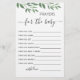 Adquira este cartão editável e desfrute de Orações para Bebê de alta qualidade para o seu evento! Este é um modelo de cartão, Você pode personalizar o cartão, mudar o texto como quiser! Atividades de chá de fraldas! Jogo de orientação neutra do gênero. Design de plantas verdes.