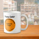 Mug com saudação de Páscoa e marca comercial de forma redonda laranja que você pode personalizar carregando o logotipo de sua empresa, digitando o nome da sua empresa e o local de sua empresa. Você pode incluí-lo em seus produtos de promocional, fornecer itens ou presentes aos seus clientes ou clientes essa Páscoa, uma estratégia de marketing para anunciar sua empresa ou promover seu nome de marca. Mug personalizável que você pode usar para criar reconhecimento de nome de marca. Verifique a aparência dos lados frontal e traseiro após carregar o logotipo e os textos de digitação. Se a aparência lhe agrada, você pode colocar seu pedido agora. Se você precisar redimensionar e reposicionar o logotipo e as mensagens em ajustado no modelo ou no estilo escolhido, ajuste na ferramenta design. Felz pascoa! Desejando mais vendas neste feriado.