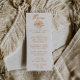 A colorful retro funky modern orange floral bouquet wedding dinner menu. Which features chic template design of boho vintage white background on the front and back. With orange whimsical typography. Prfect and matching with the whole suite.
