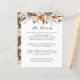 Este elegante cartão de informação floral verde, marfim, laranja e verde-musgo apresenta borda botânica de flores delicadas no topo do texto desejado. Perfeito para aconselhar hóspedes em alojamentos hoteleiros, códigos de grupo, transporte, instruções, informações de recepção de boas-vindas e sua url do site de casamento. Indicado para casamentos sofisticados ou comemoração chique em qualquer época do ano. Placa inversa a um padrão de flor correspondente na mesma paleta de cor de terra sobre fundo verde-musgo