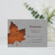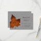 Uma folha grande, sutilmente monificada de maple laranja, em um fundo ilustrado de linho, decora esta cinza RSVP. Ele é mostrado no papel mate; no entanto, recomendo o peso e a textura do papel de linho, para melhorar a aparência.
