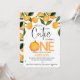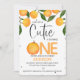 Convite para o primeiro aniversário da menina Orange Little Cutie First Birthday Esta gentil chamada para o primeiro aniversário de uma menina apresenta algumas laranjas, caligrafia moderna em preto, coração pequeno e alguns pontos negros. Este nosso convite para primeiros aniversarios é a maneira ideal de convidar convidados para uma festa de aniversário de primeira infância para uma menina.
