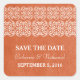 Boêmia Moderna Elegante e sofisticada Salve os adesivos de Data com borda de espiral única e papel vintage em cor de laranja. Estes na moda são perfeitos para anunciar seu casamento com temas asiáticos ou boêmicos. Fácil de personalizar, basta adicionar os detalhes do casamento nos campos de texto fornecidos. Clique em "Personalizar" para encontrar mais opções de personalização.