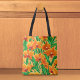 Tote bag with orange orchids, a floral bag to add the beauty of nature’s bloom to your belongings and style.