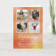 Programa de funeral dobrado com fontes elegantes e uma colagem fotográfica de seu ente querido contra um fundo de cor d'água laranja. No cobrir, quatro fotos quadradas de seu amado, juntamente com o nome e os anos de vida deles. Dentro você pode escrever o obituário e o programa. No verso você pode adicionar reconhecimentos.