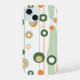 Esse trabalho de arte apresenta um padrão elegante e minimalista de formas circulares e alongadas, organizadas em um alinhamento vertical que lembra designs retrorfuturistas. A composição usa uma paleta de cor fresca de verde, laranja e creme suave, criando um aspecto harmonioso e equilibrado. Os círculos, alguns sólidos e alguns esboçados, parecem flutuar ao longo de linhas verticais finas, evocando a imagem de planetas e órbitas. A combinação de linhas limpas e formas moles dá à peça uma sensação moderna, mas nostálgica, combinando a estética moderna do século médio com um toque de estilo contemporâneo.