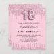 Um convite moderno, na moda e glamouroso para a 18ª festa de aniversário de uma menina. Um fundo de pincelada com pingos de falso brilho, aparência de pingar tinta. O nome é escrito com um moderno estilo escrito à mão. Personalize e adicione os detalhes da sua festa. O número 18 é escrito com uma fonte de estilo balão, script.